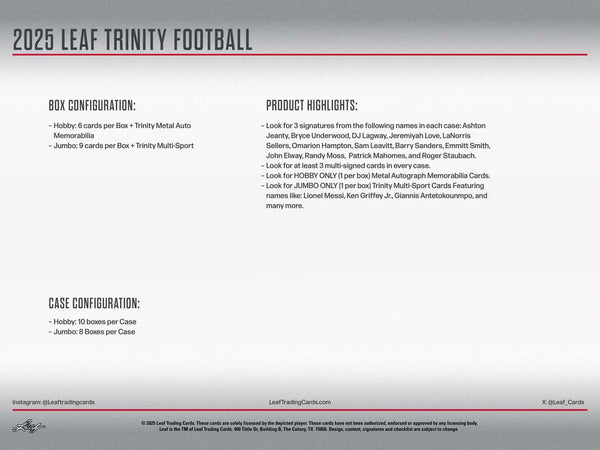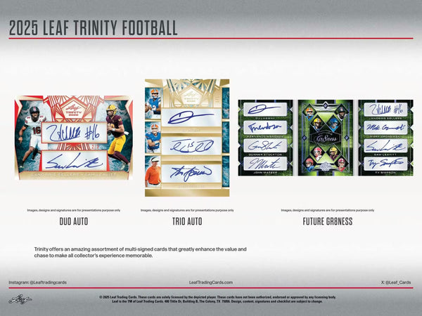 (2) 2025 LEAF TRINITY FOOTBALL HOBBY BOXES