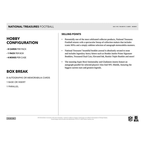 (4) 2025 NATIONAL TREASURES FOOTBALL HOBBY BOXES FROM A SEALED CASE